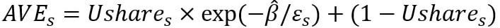 In this expression, 𝜏ˆ = τ'/τ is the proportional change in trade costs and ε denotes the trade elasticity. As we have a numerical estimate of the estimated coefficient beta hat that represents the (partial) effect on trade values of removing uncertainty, we can back out the trade cost change as long as estimates of the trade elasticity are also available. Adding a sector subscript s, AVE trade cost estimates can be computed as: